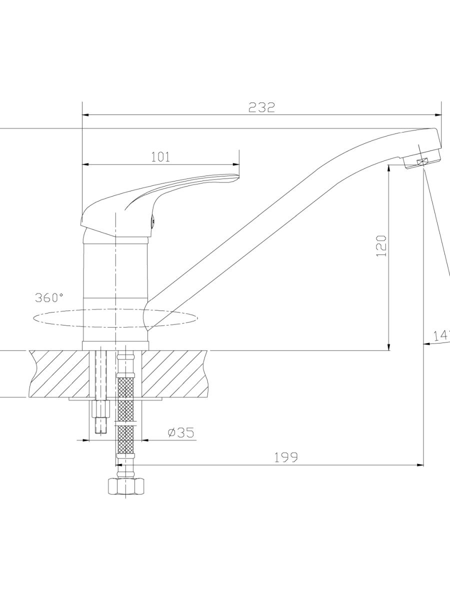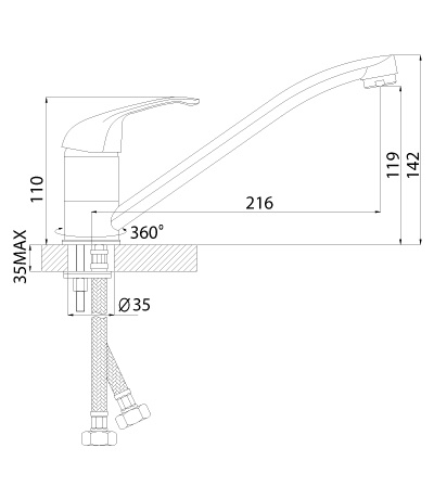 Смеситель ROSSINKA A35-21 предназначен для использования на кухне. Смеситель устанавливается на мойку в ее монтажное отверстие и закрепляется присоединительной группой. Управлять процессом включения и смешивания воды можно с помощью одной ручки с керамическим картриджем диаметром 35 мм и повортного излива 250 мм.