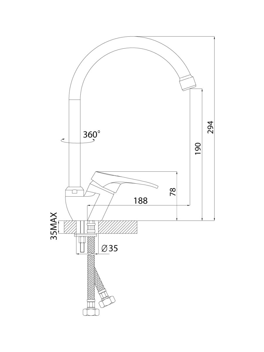 Смеситель ROSSINKA B35-23 предназначен для использования на кухне. Смеситель устанавливается на мойку в ее монтажное отверстие и закрепляется присоединительной группой. Управлять процессом включения и смешивания воды можно с помощью одной ручки с керамическим картриджем диаметром 35 мм и высокого повортного излива длиной 180 мм.