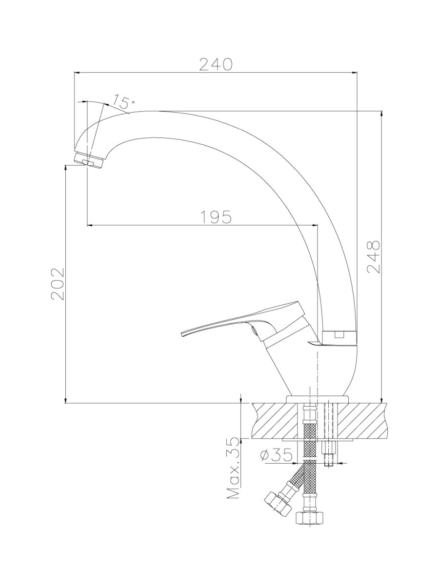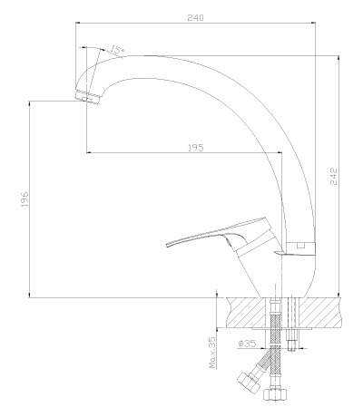 Смеситель ROSSINKA B35-25 предназначен для использования на кухне. Смеситель устанавливается на мойку в ее монтажное отверстие и закрепляется присоединительной группой. Управлять процессом включения и смешивания воды можно с помощью одной ручки с керамическим картриджем диаметром 35 мм и высокого повортного излива.