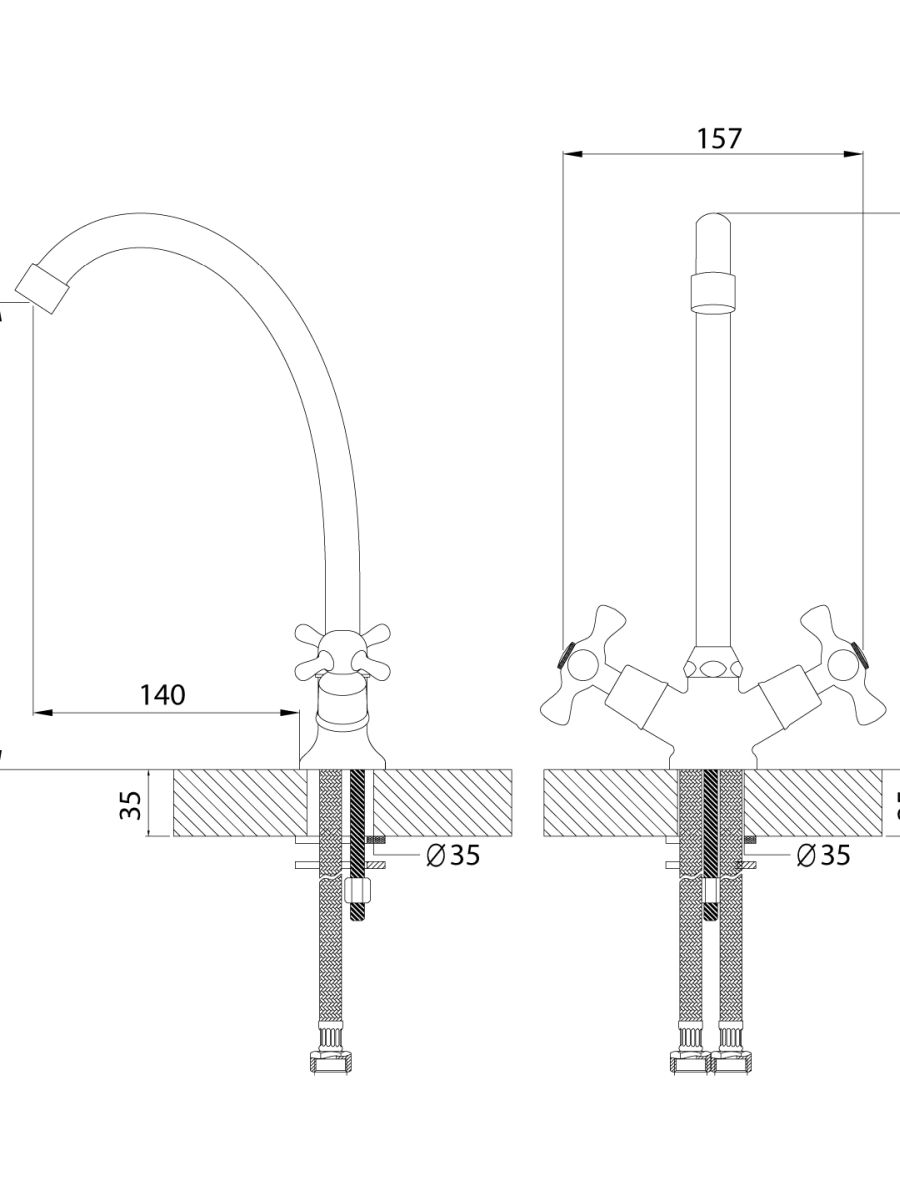 Гибкая подводка длиной 30 см - 2 шт.;