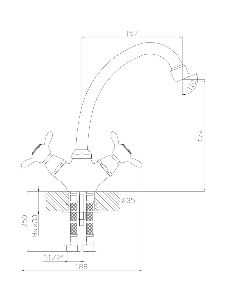 Гибкая подводка длиной 30 см - 2 шт.;