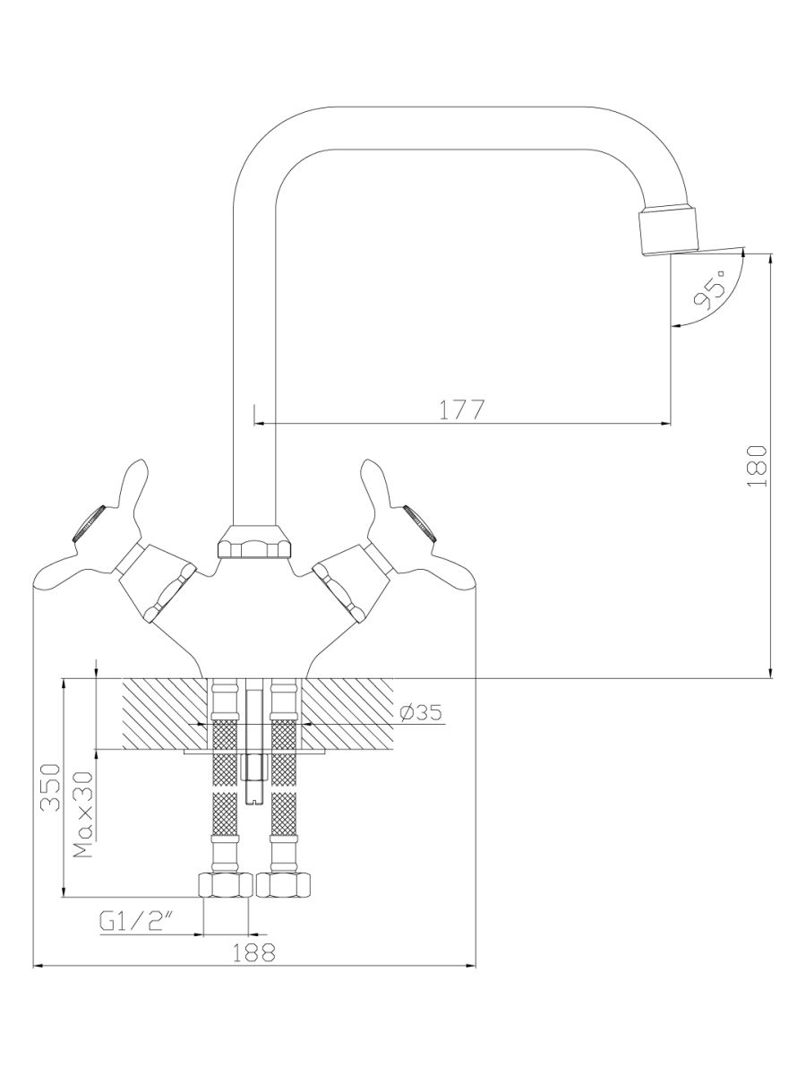 Гибкая подводка длиной 30 см - 2 шт.;