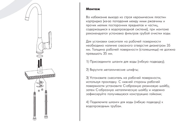 В комплекте смесителя для кухниROSSINKA RS28-23 :