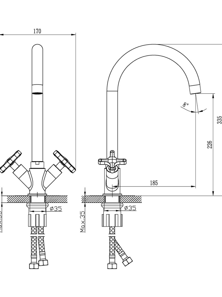 Гибкая подводка длиной 40 см - 2 шт.;