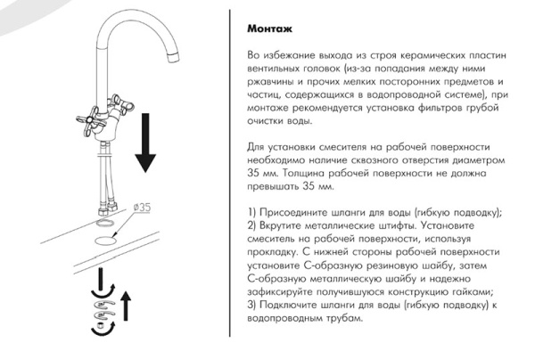 В комплекте смесителя для кухниROSSINKA RS42-72 :