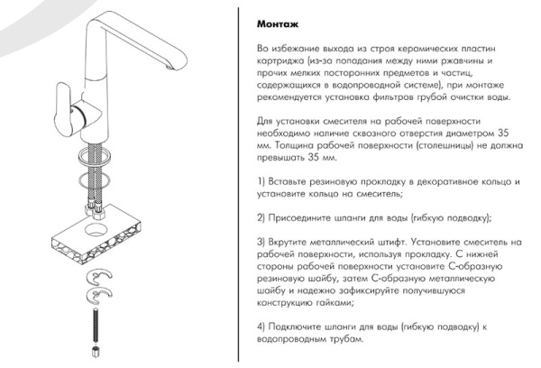 В комплекте смесителя для кухниROSSINKA W35-23 :