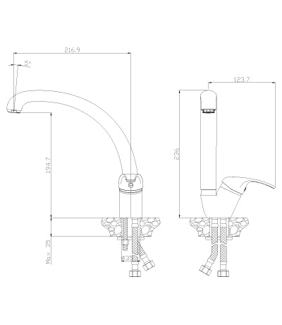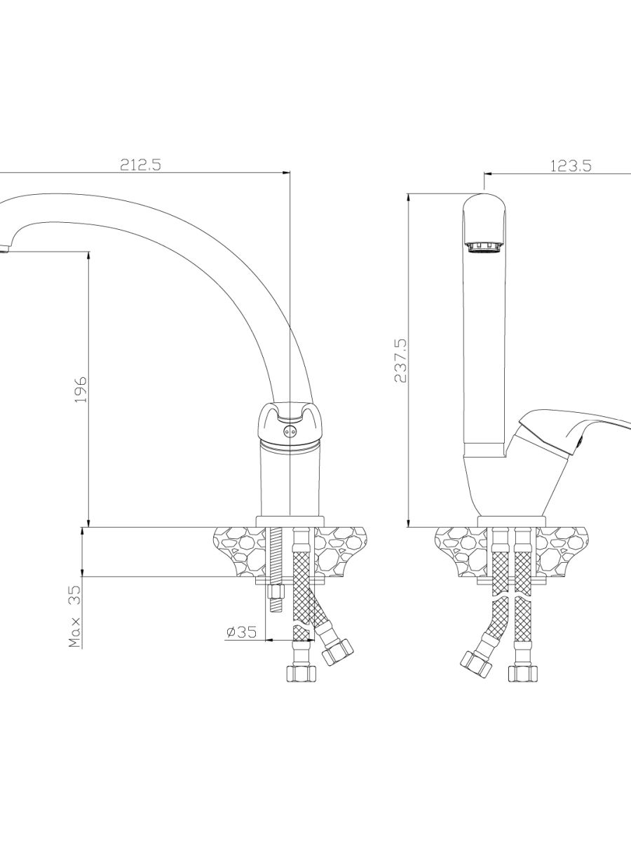 Смеситель ROSSINKA Y35-23 предназначен для использования на кухне. Смеситель устанавливается на мойку в ее монтажное отверстие и закрепляется присоединительной группой. Управлять процессом включения и смешивания воды можно с помощью одной ручки с керамическим картриджем диаметром 35 мм и высокого повортного излива длиной 195 мм.