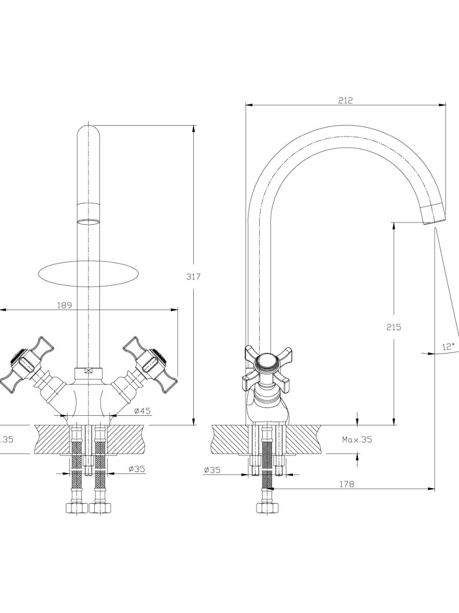 Гибкая подводка длиной 35 см - 2 шт.;