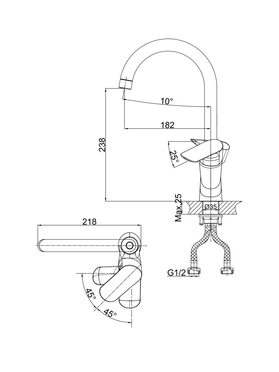 - Гибкая подводка 40 см идёт в комплекте для быстрой установки.