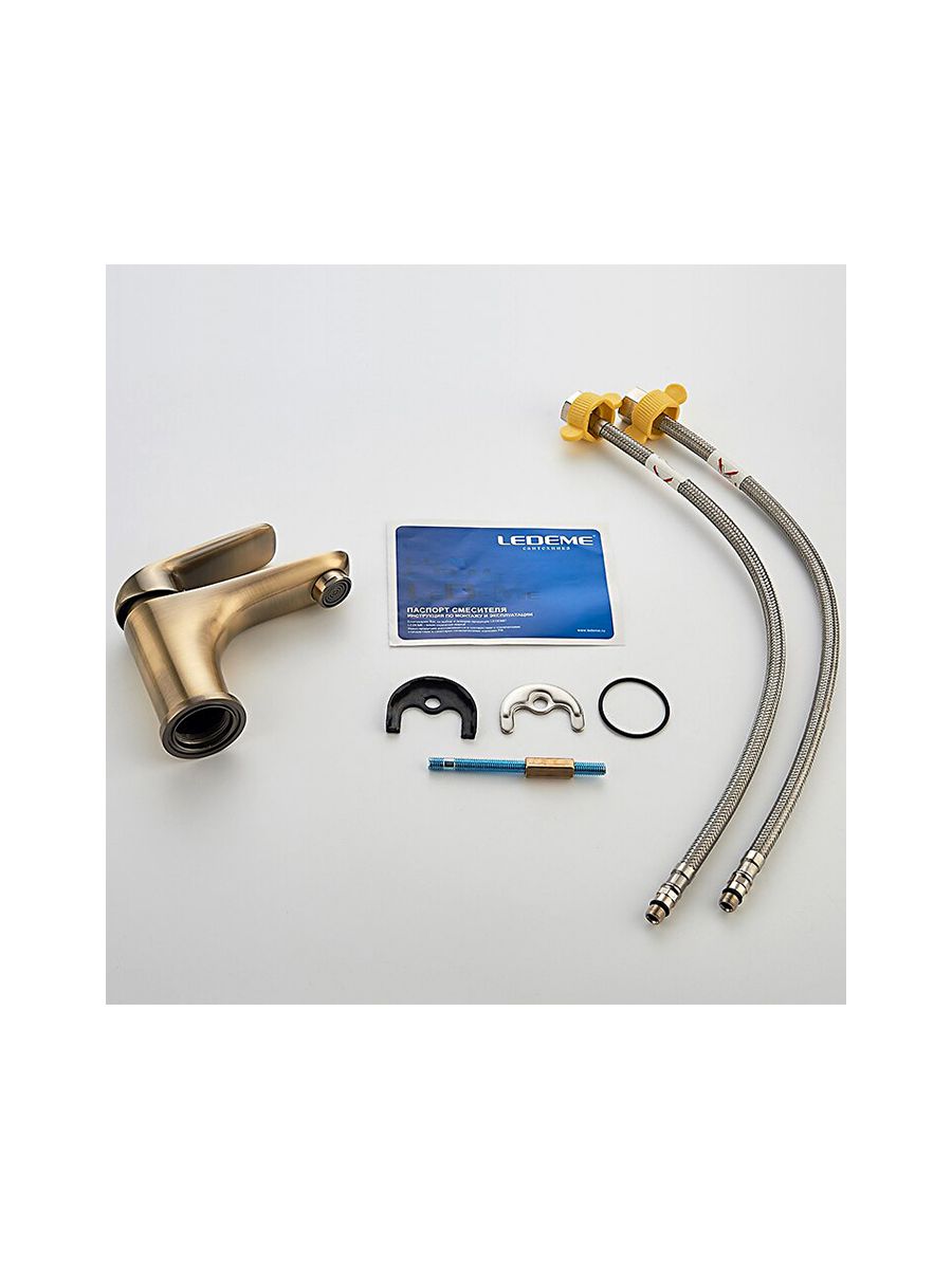 Cмеситель умывальник LEDEME картридж д.35мм,бронза L1048C смесители производителя Ledeme представляют собой современную модель, относятся к эконом-классу и отличаются демократической ценой, достойным качеством и приятным дизайном соответсвующим европейским международным стандартам. В комплект входят аксессуары и гибкая подводка, запорный клапан состоит керамического катриджа диаметром 35 мм, что значительно увеличивает их срок службы. Смеситель изготовлен из высококачественной латуни с покрытием цвета бронза, которое делает смеситель Ledeme устойчивым к механическим повреждениям и загрязнениям, что позволяет надолго сохранить превосходный внешний вид изделия.