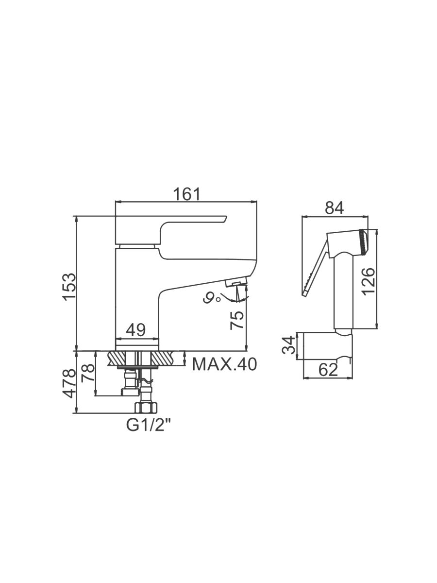 Смеситель для раковины Ledeme с гигиенической лейкой L1254