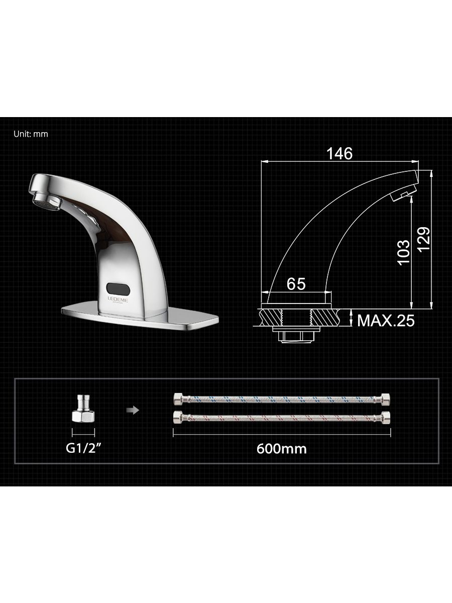 Смеситель умывальник LEDEME сенсорный L1055-13 в коллекции смесителей из серии нестандартные смесители с хромовым покрытием успешно сочетаются с современным дизайном с применением необычных форм деталей. Такой контраст делает модель оптимальной для интерьеров в современном стиле, сочетающих функционализм и комфорт для пользователей. Конструкция моделей основана на использовании сенсорного элемента, имеющего практически не ограниченны ресурс и максимально экономичную пропускную способность, изготовлен из прочной, высококачественной латуни, аэратор максимально увеличивает насыщенность воды кислородом, аэрация струи происходит за счет увеличения площади потока. Удобно расположенный сенсорный элемент позволяет полностью минимизировать усилия, необходимые для изменения температуры и напора воды.