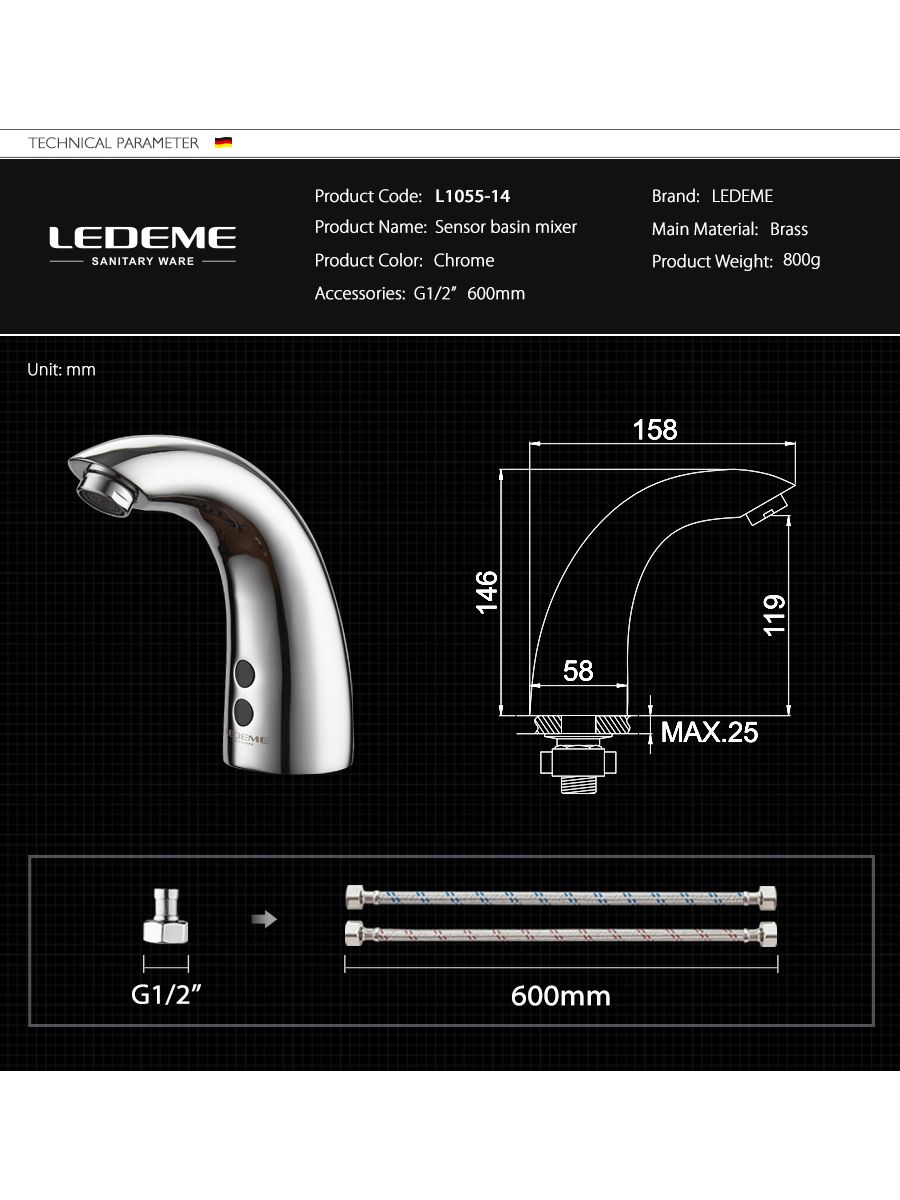 Смеситель умывальник LEDEME сенсорный L1055-14 в коллекции смесителей из серии нестандартные смесители с хромовым покрытием успешно сочетаются с современным дизайном с применением необычных форм деталей. Такой контраст делает модель оптимальной для интерьеров в современном стиле, сочетающих функционализм и комфорт для пользователей. Конструкция моделей основана на использовании сенсорного элемента, имеющего практически не ограниченны ресурс и максимально экономичную пропускную способность, изготовлен из прочной, высококачественной латуни, аэратор максимально увеличивает насыщенность воды кислородом, аэрация струи происходит за счет увеличения площади потока. Удобно расположенный сенсорный элемент позволяет полностью минимизировать усилия, необходимые для изменения температуры и напора воды.