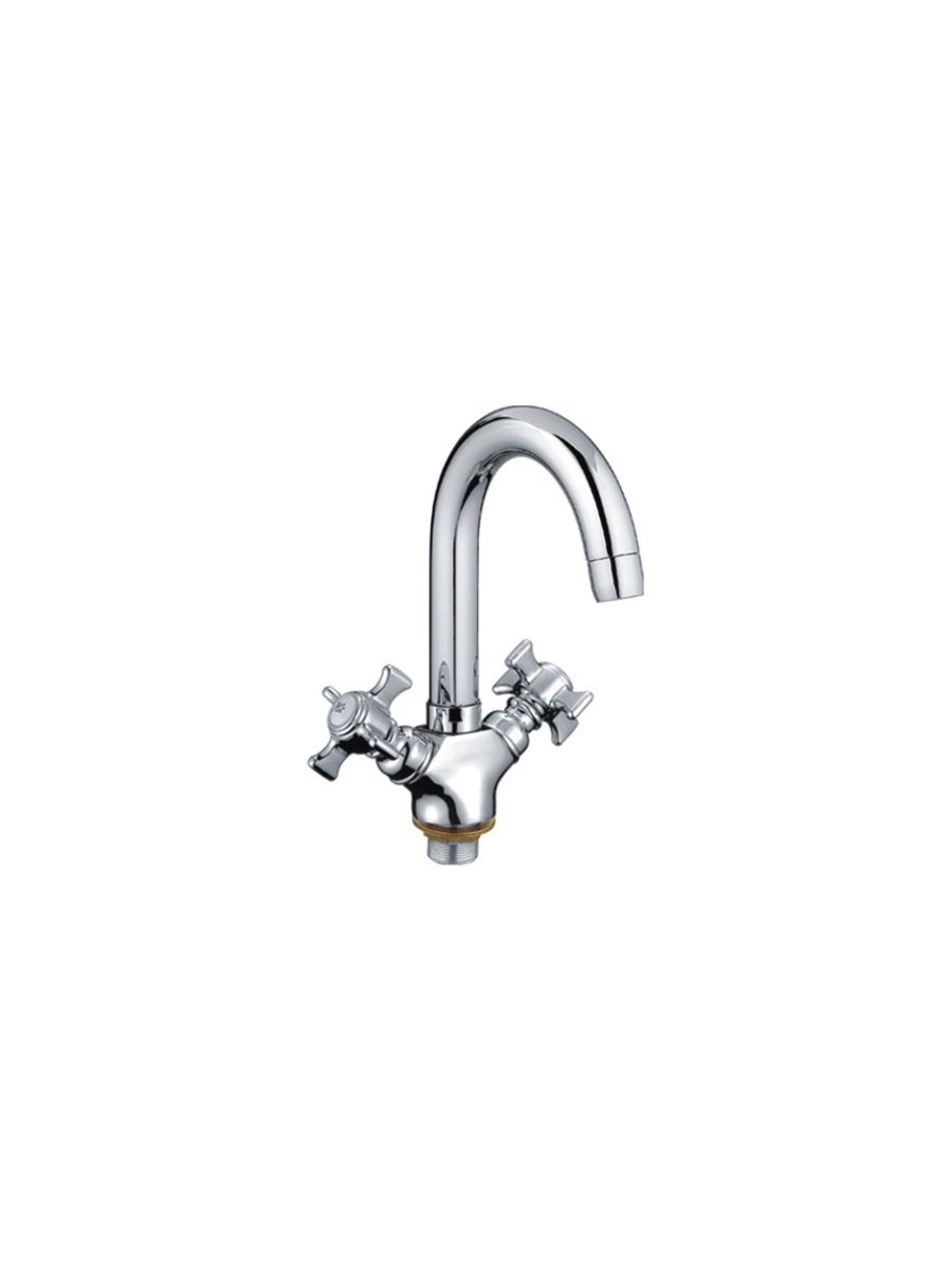 Смеситель умывальник LEDEME литой излив, крест ,керамика, с гайкой, цинк, L1111-2 cмесители под торговой маркой LEDEME изготовлены из высококачественной латуни с хромированным покрытием и соответствуют общеевропейским и международным стандартам качества. В ассортименте представлены смесители различного направления дизайна и назначения, с двумя маховиками или однорычажные, хромированные, матовые, гранитные, тропический душ и другие.Смеситель LEDEME L1111-2 из серии H11 предназначен для использования в умывальниках. Смешивание горячей и холодной воды происходит с помощью двух крестообразных металлических маховиков и керамических кран-букс. Смеситель с поворотным изливом высотой 150 мм, устанавливается на умывальник со стандартным отверстием под смеситель и крепится с помощью обжимной гайки. В комплекте подводка к смесителю. Гарантия на комплектующие 1 год.