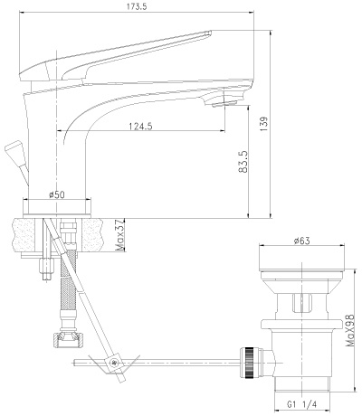• Скрытый аэратор Neoperl® Slim SSR• Керамический картридж Citec® 35 мм• Гибкая подводка ½” 60 см• Донный клапан Click/Clack 1¼”, хромированный• Присоединительная группа для настольного крепления• Металлическая рукоятка