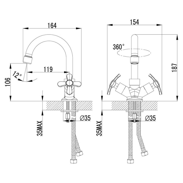 Серия PARTNER.Комплектация:АэраторКран-буксы с керамическими пластинами (угол поворота – 180°)Гибкая подводка ½” 35 смПрисоединительная группа для настольного крепленияМеталлические рукоятки