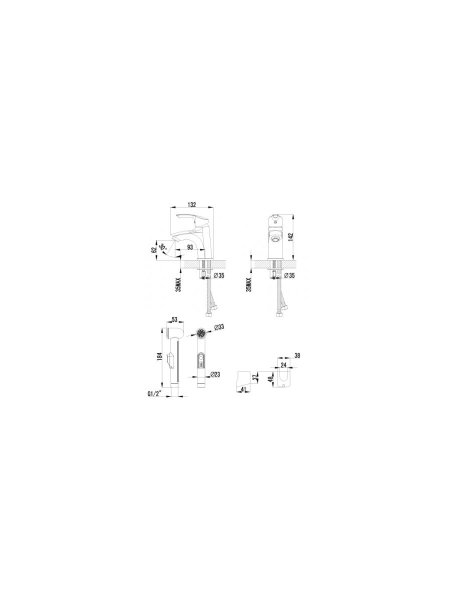 Аксессуары в комплекте: лейка для биде с нажимным механизмом, шланг 1,5 м, настенное крепление для лейки