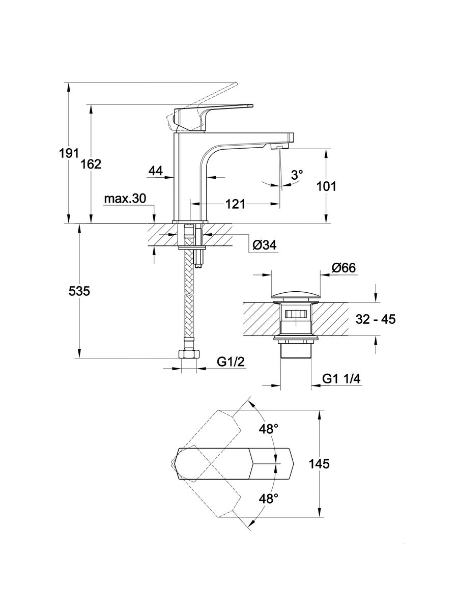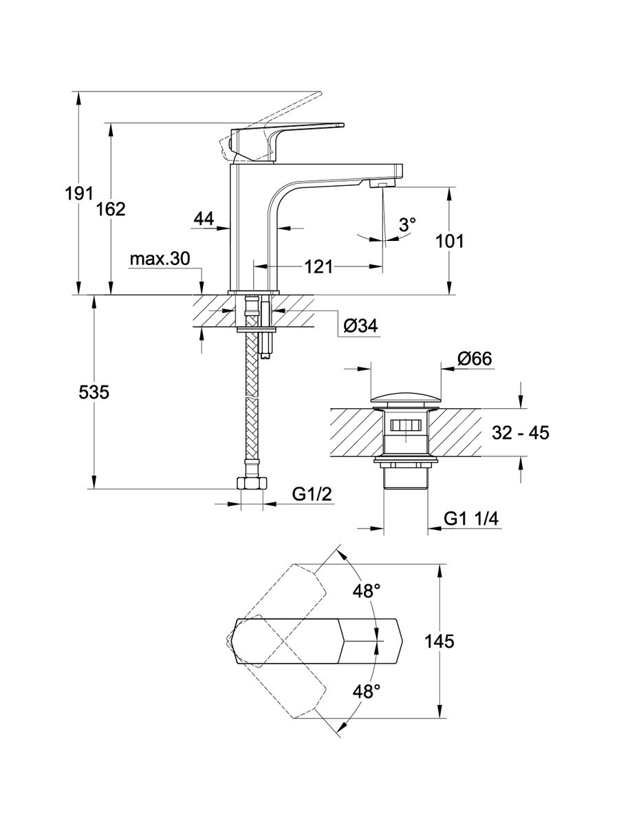 Комплектация: смеситель, подводка для воды, донный клапан, крепеж, гарантийный талон, инструкция по эксплуатации