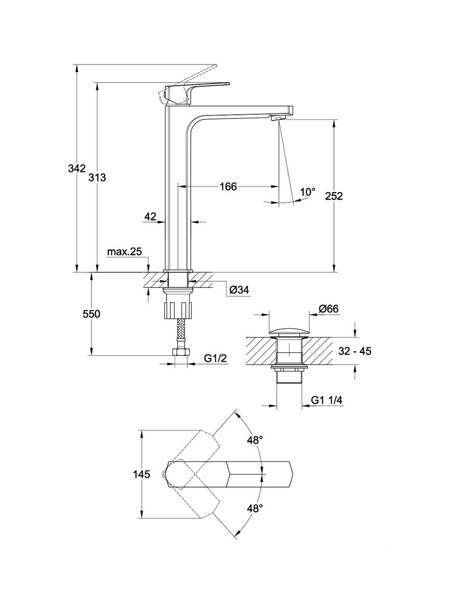 Комплектация: смеситель, подводка для воды, донный клапан, крепеж, гарантийный талон, инструкция по эксплуатации