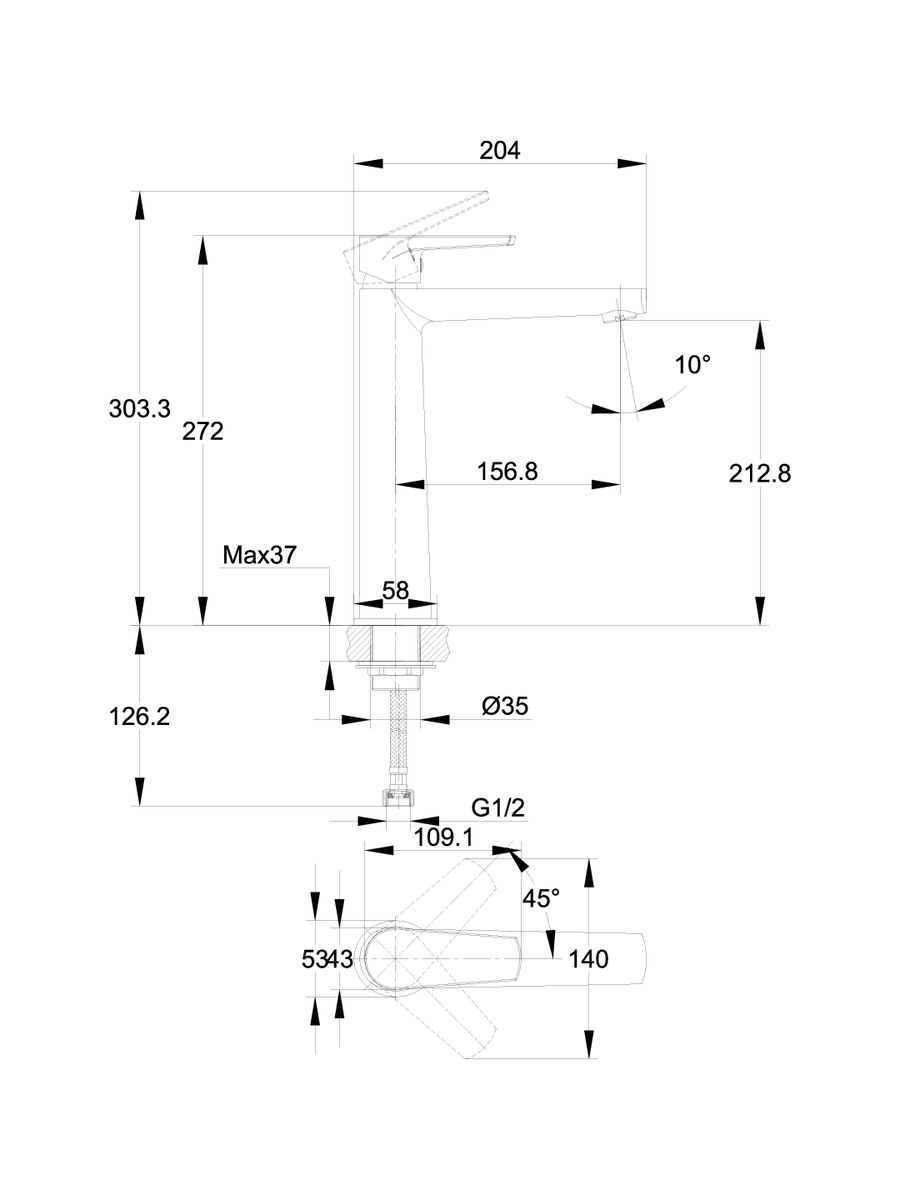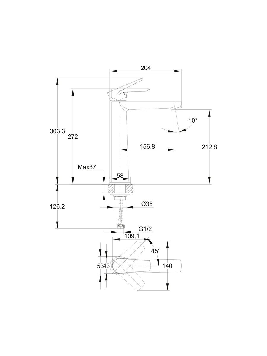 Смеситель раковина высокий Cersanit MODUO однорычажный 64095