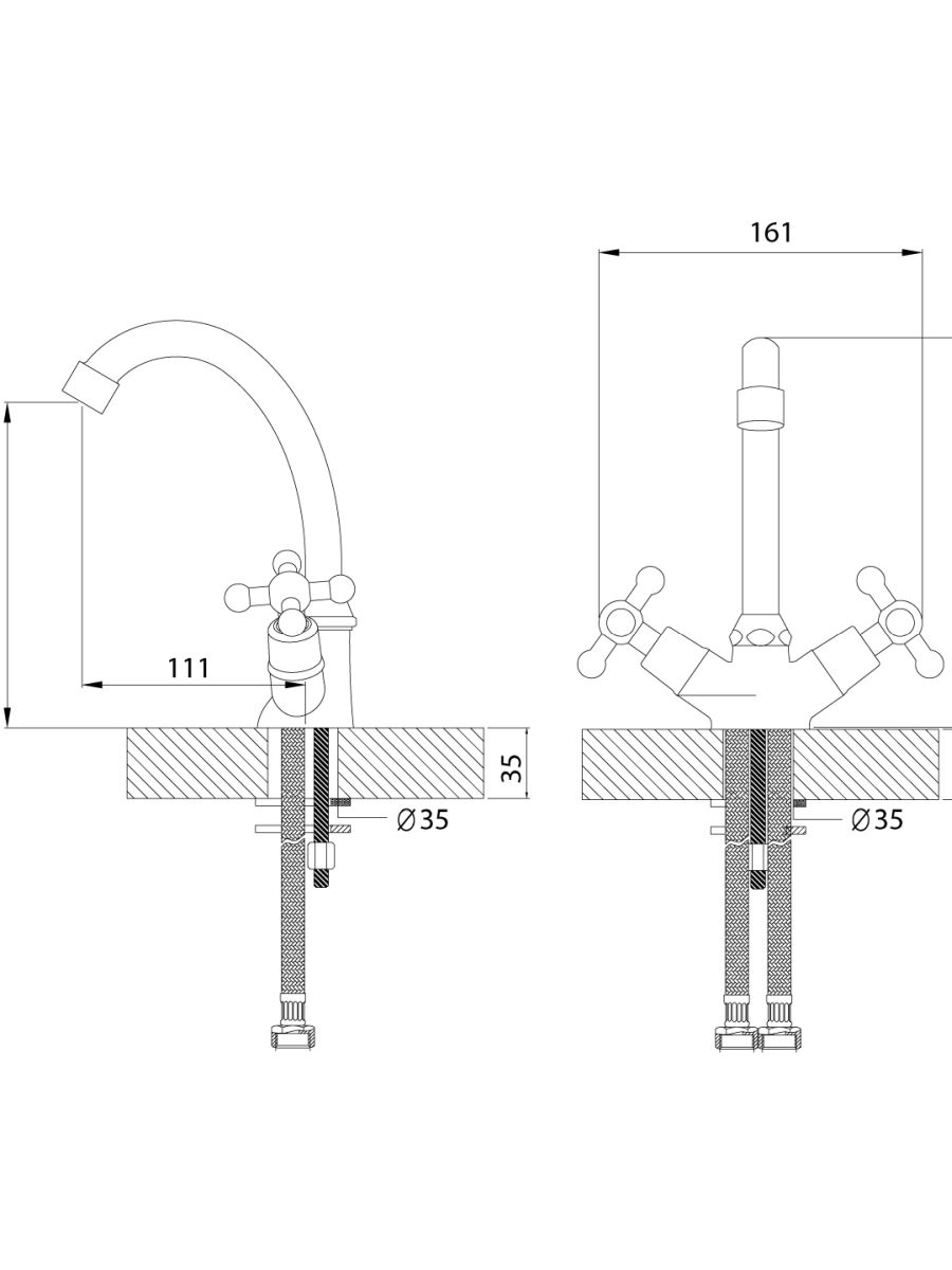 Смеситель ROSSINKA G02-62 предназначен для использования на кухне. Смеситель устанавливается на мойку в ее монтажное отверстие и закрепляется присоединительной группой. Управлять процессом включения и смешивания воды можно с помощью двух ручек с керамическими кран-буксами и высокого повортного излива длиной 220 мм.