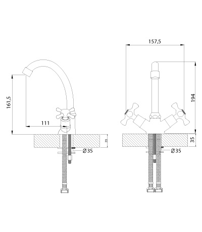 Смеситель ROSSINKA H02-62 предназначен для использования на кухне. Смеситель устанавливается на мойку в ее монтажное отверстие и закрепляется присоединительной группой. Управлять процессом включения и смешивания воды можно с помощью двух ручек с керамическими кран-буксами и высокого повортного излива длиной 220 мм.