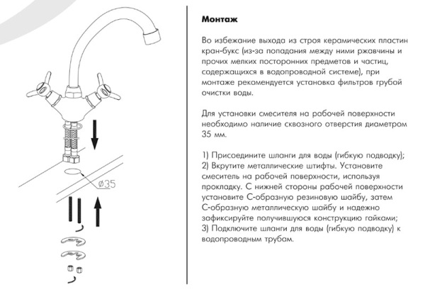 Пластиковый аэратор с функцией лёгкой очистки, который обеспечивает низкий уровень шума и делает струю воды равномерной и приятной на ощупь;