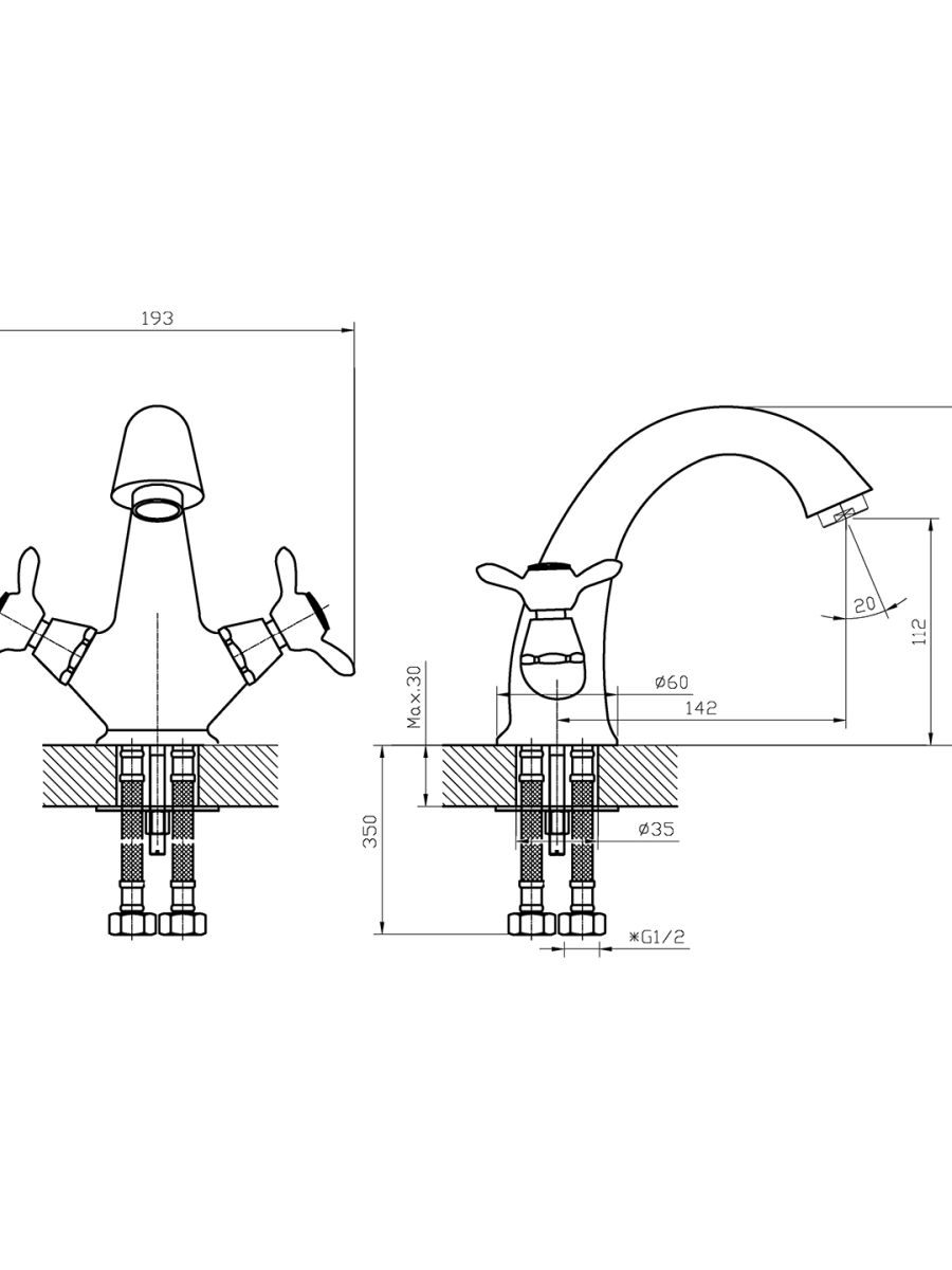 Гибкая подводка длиной 30 см - 2шт;