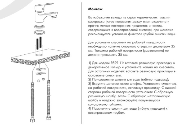 В комплекте смесителя для умывальника ROSSINKA RS28-11 :
