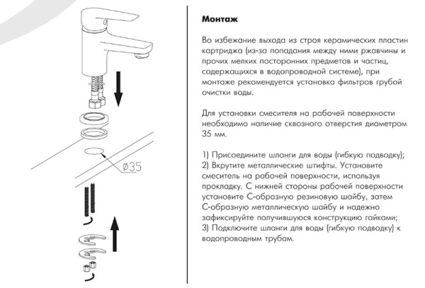 Пластиковый аэратор с функцией лёгкой очистки, который обеспечивает низкий уровень шума и делает струю воды равномерной и приятной на ощупь;