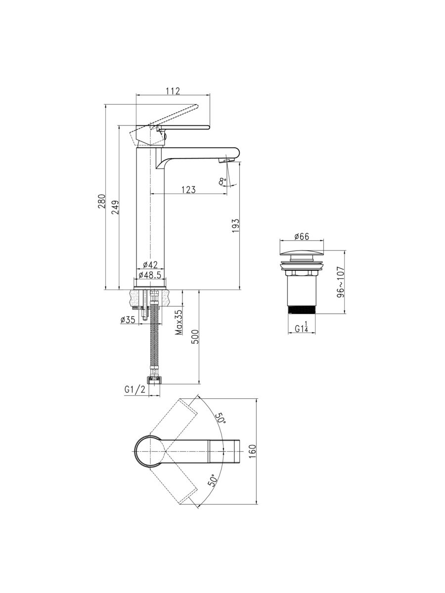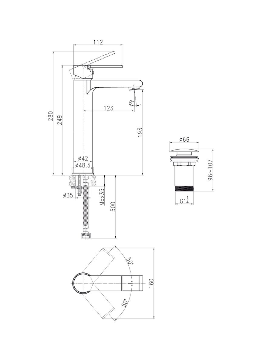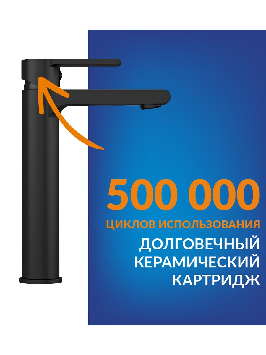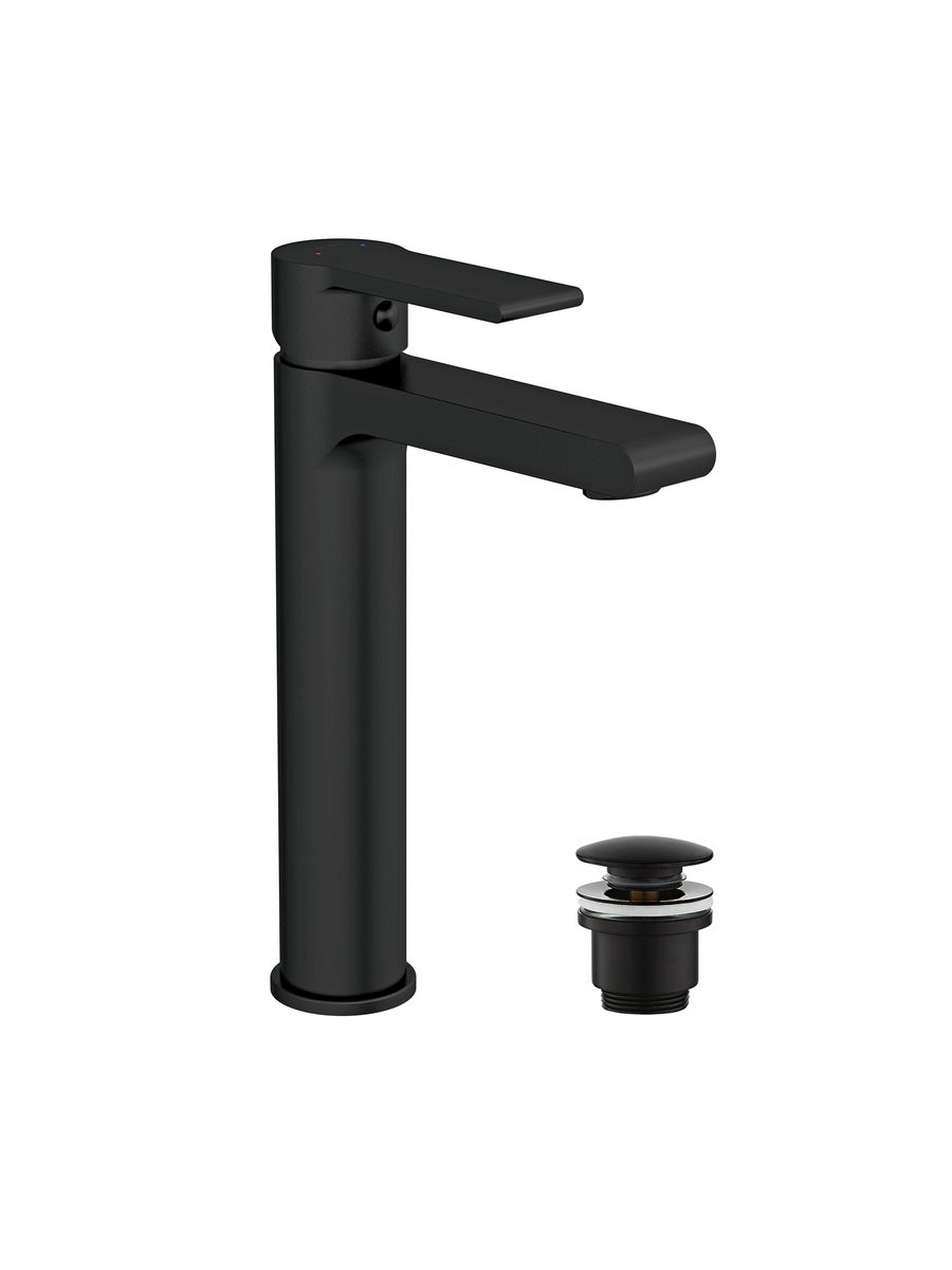 Смеситель для раковины высокий BRASKO BLACK однорычажный черный клик клак