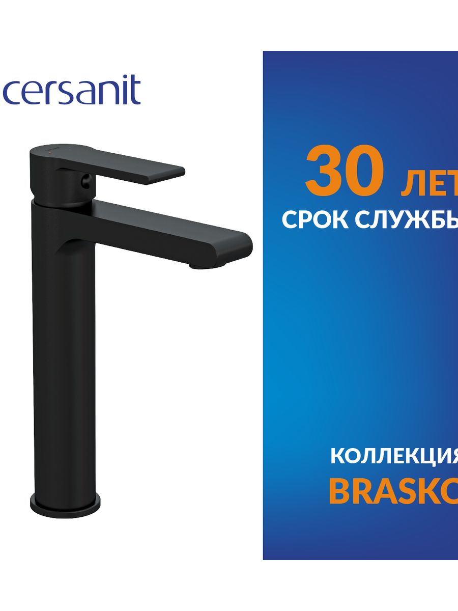 Смеситель умывальник Cersanit BRASKO BLACK высокий клик-клак 63111