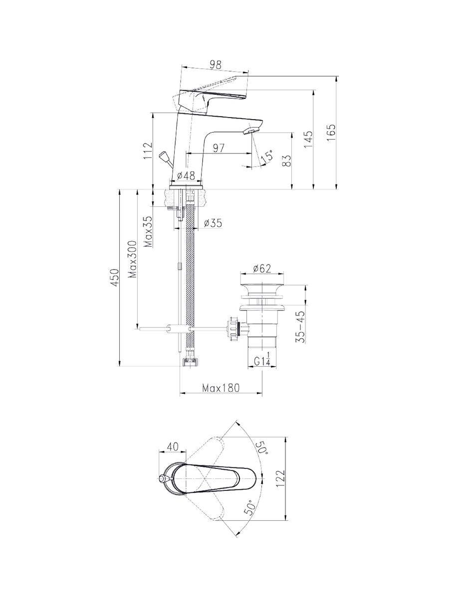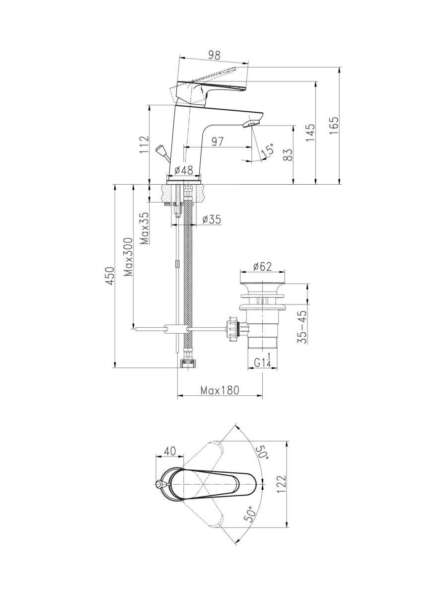 Смеситель умывальник Cersanit CERSANIA со сливным гарнитуром 63030