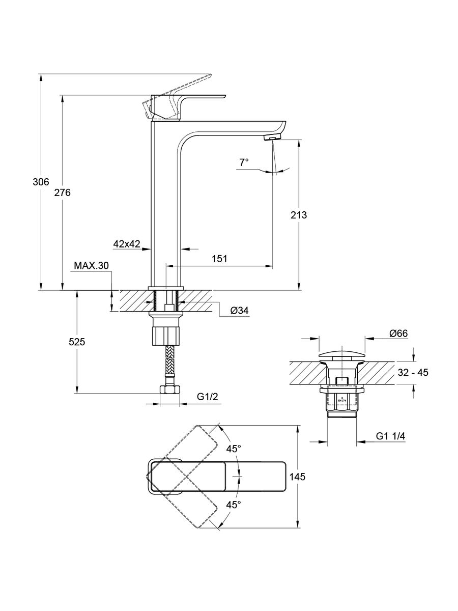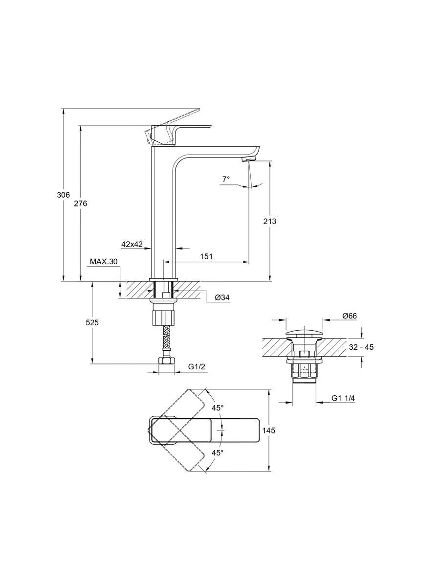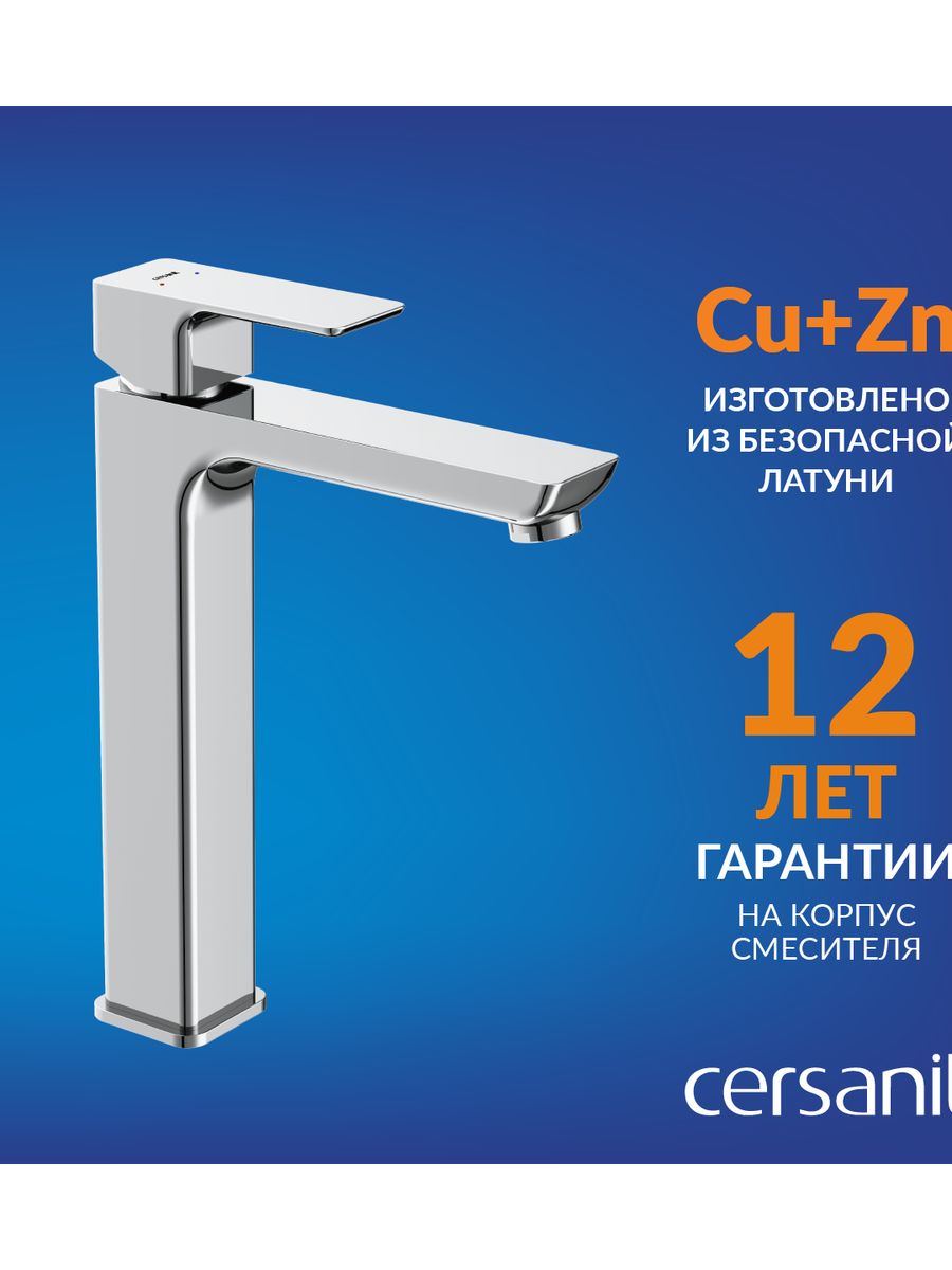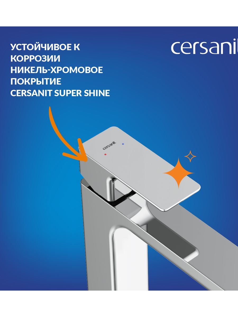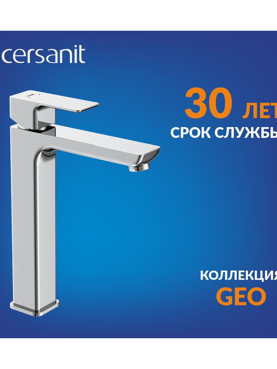 Смеситель умывальник Cersanit GEO высокий клик-клак 63043