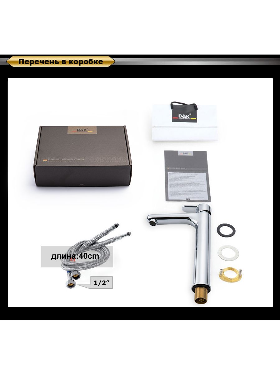 - Гибкая подводка 40 см идёт в комплекте для быстрой установки.