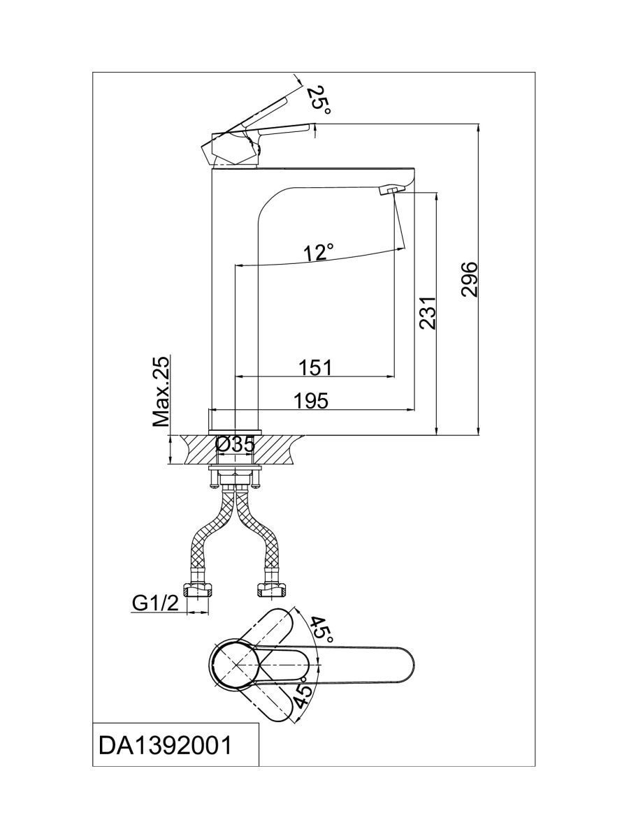 Смеситель умывальник D&K Rhein.Marx высокий DA1392001