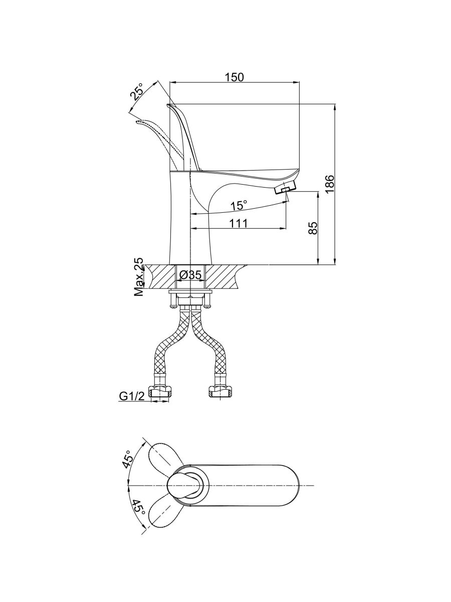 - Гибкая подводка 40 см идёт в комплекте для быстрой установки.
