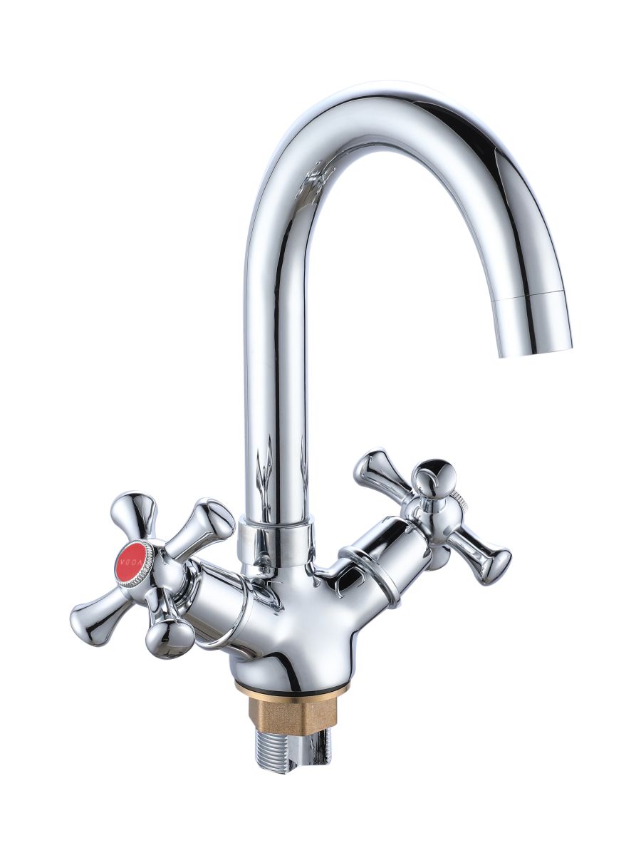 Смеситель для умывальника. Корпус: латунь. Керамические кран-буксы с углом поворота 90 градусов. В комплекте: крепеж, гибкая подводка.
