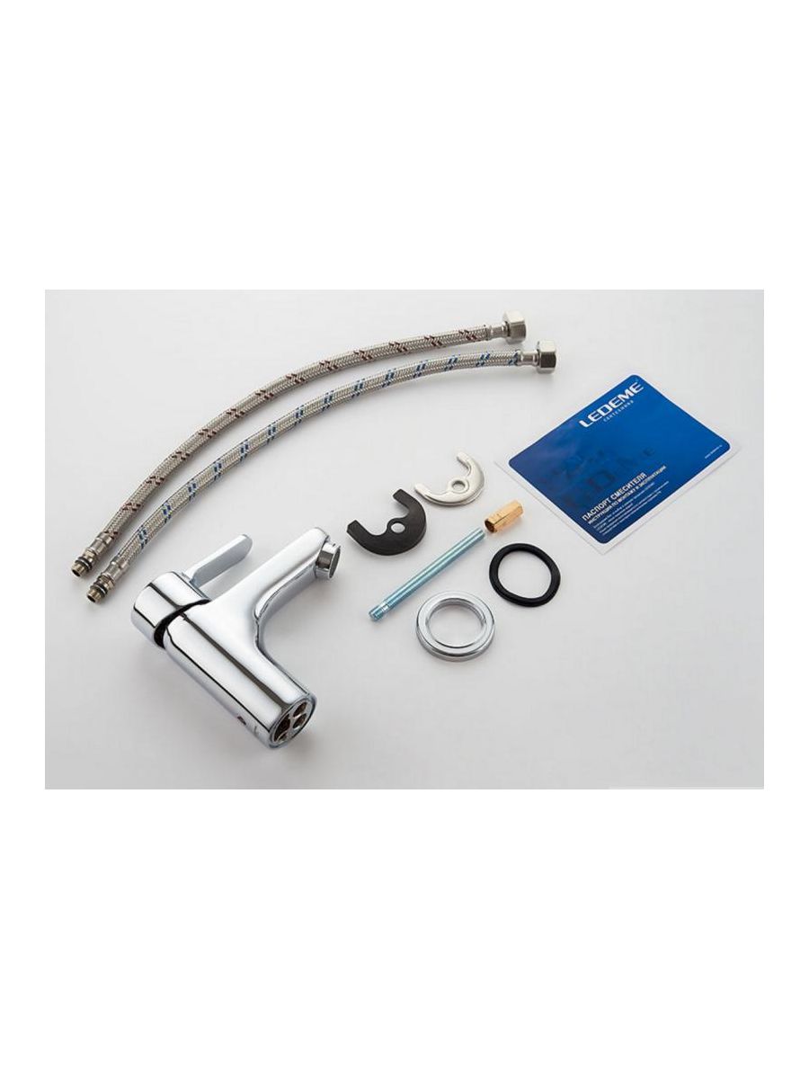 Смеситель LEDEME L1003 из серии смесителей H03 предназначен для использования в умывальниках со стандартным отверстием под смеситель, крепится с помощью шпильки.Смеситель L1003 изготовлен из латуни с хромированным покрытием, смешивание и подача воды происходит с помощью керамического картриджа 35 мм и одной ручки. Длина монолитного излива 139 мм, высота излива 74 мм, в комплекте необходимые крепления и гибкая подводка для подключения воды.