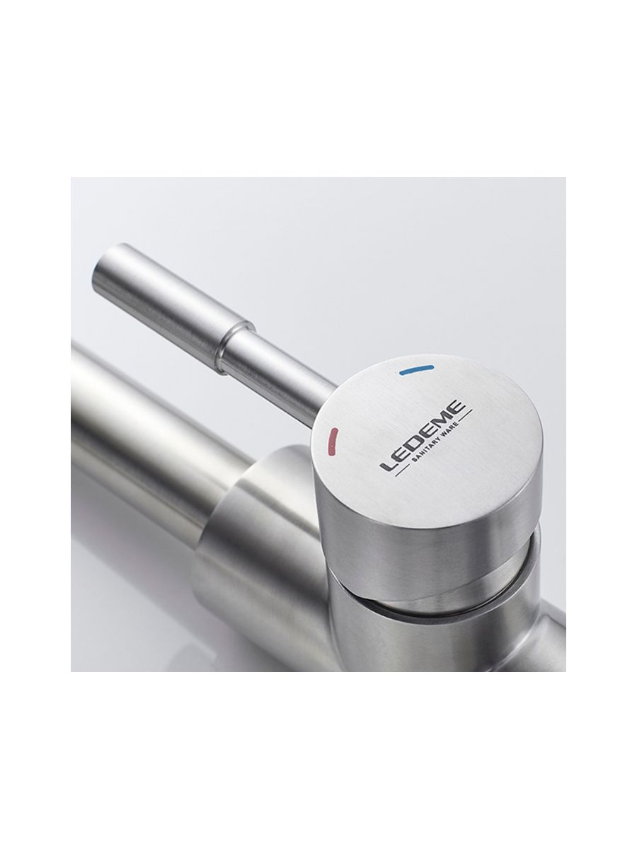Смеситель умывальник LEDEME, картридж 35мм, нержавейка, L1098-5 в коллекции смесителей из нержавеющей стали с хромовым покрытием успешно сочетаются строгий лаконизм простых форм деталей. Такой контраст делает модель оптимальной для интерьеров в современном стиле, сочетающих функционализм и комфорт для пользователей. Конструкция моделей основана на использовании керамического смешивающего картриджа, имеющего повышенный ресурс и пропускную способность, изготовлен из прочной, долговечной нержавеющей стали, аэратор максимально увеличивает насыщенность воды кислородом, аэрация струи происходит за счет увеличения площади потока. Удобная эргономичная ручка смесителей имеют форму, удобную для захвата ладонью и значительные размеры, что позволяет уменьшить усилия, необходимые для изменения температуры и напора воды.