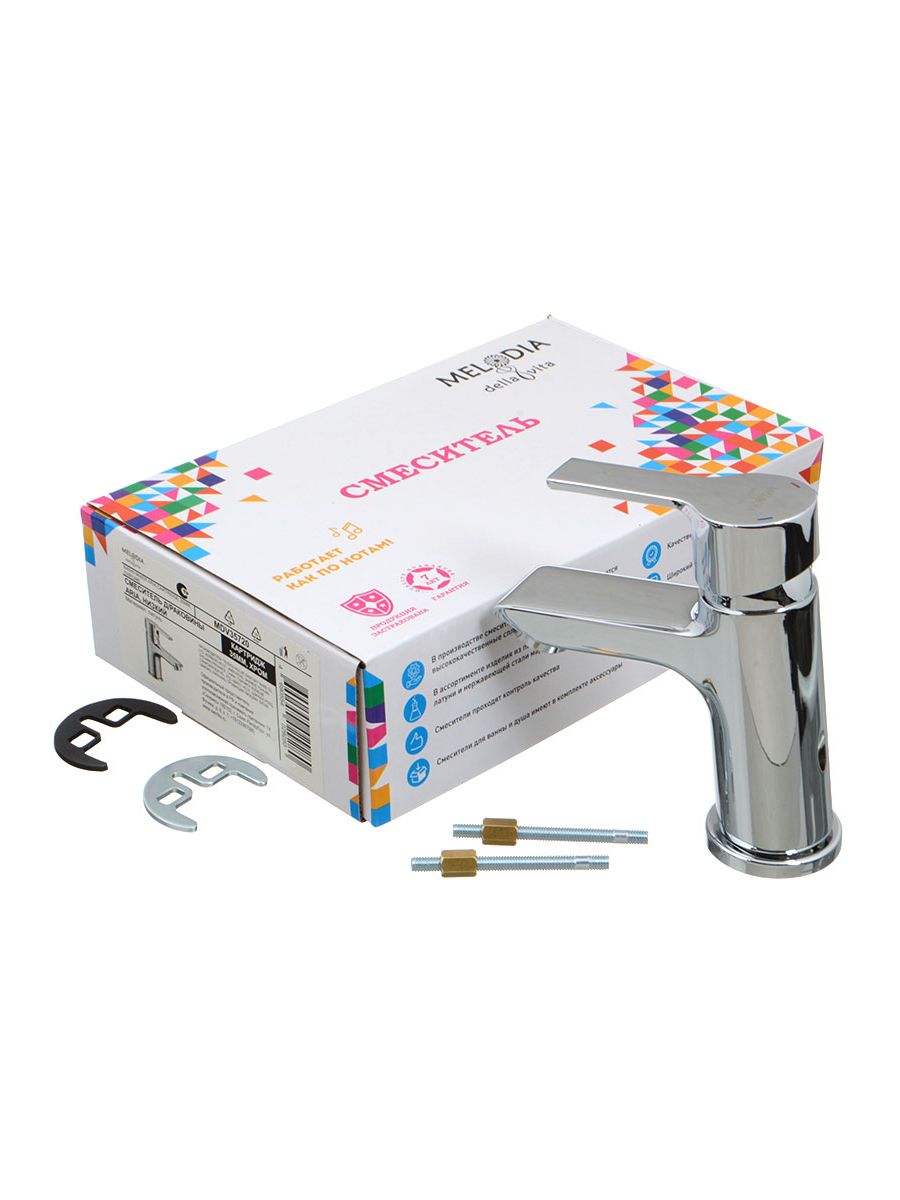 Корпус латунь/цинковая ручка, 35 мм картридж Wanhai/Mingdi, NEOPERL поворотный аэратор (без водосберегающей функции), латунная гайка картриджа, без гибкой подводки и донного клапана, хромированное покрытие смесителя. Крепеж: железная пластина 2,5 мм + железный винт 70 мм -1шт + латунная гайка.