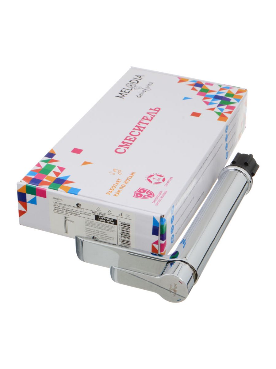 Смеситель умывальник MELODIA Metallica картридж 35мм высокий хром MDV35521