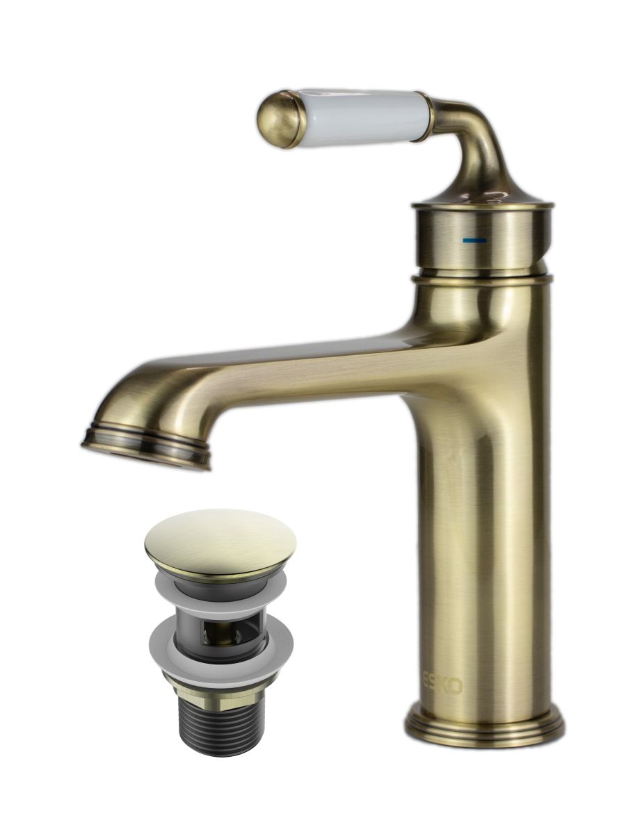 Корпус: латунь кат.A, покрытие "Бронза сатин" Картридж: универсальный ESKO, 35мм Комплектация: пьедестал, крепление "FastFix",гибкая подводка 40см. Донный клапан нажимной "Бронза сатин" в комплекте