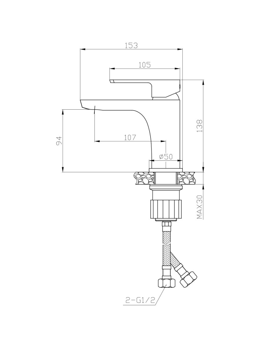 Смеситель умывальник ROSSINKA картридж 35мм монолитный RS50-12