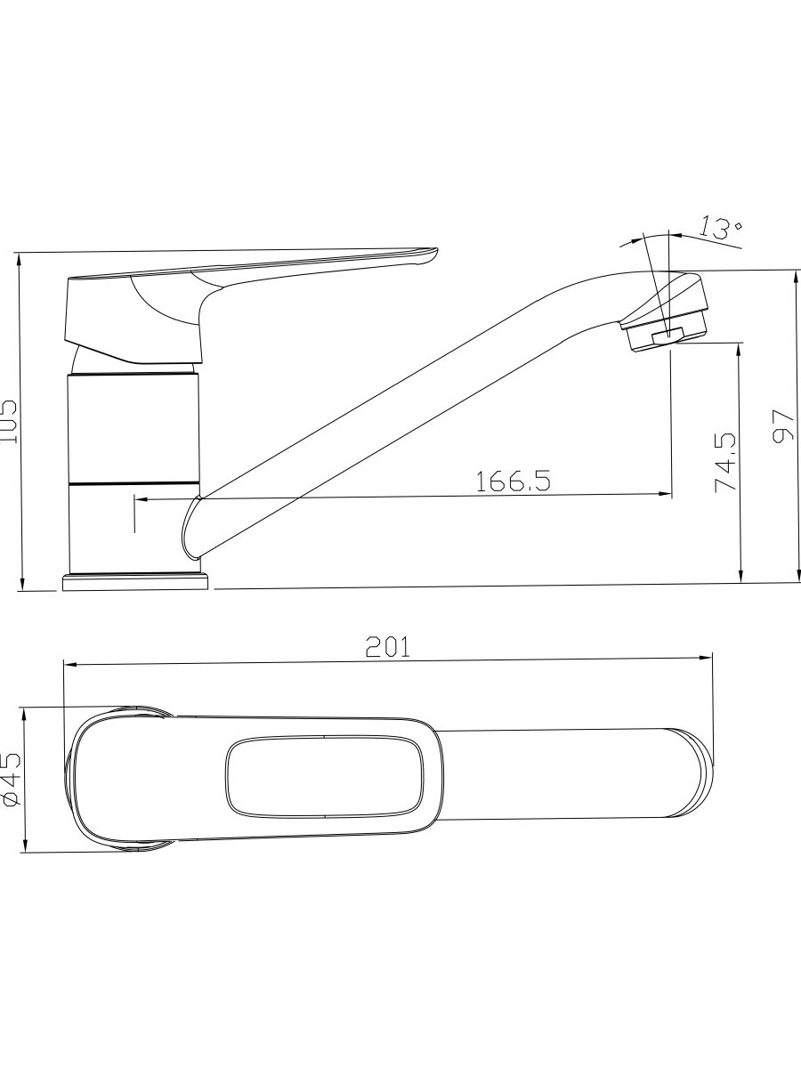Смеситель умывальник Rossinka с поворотным изливом RS46-22