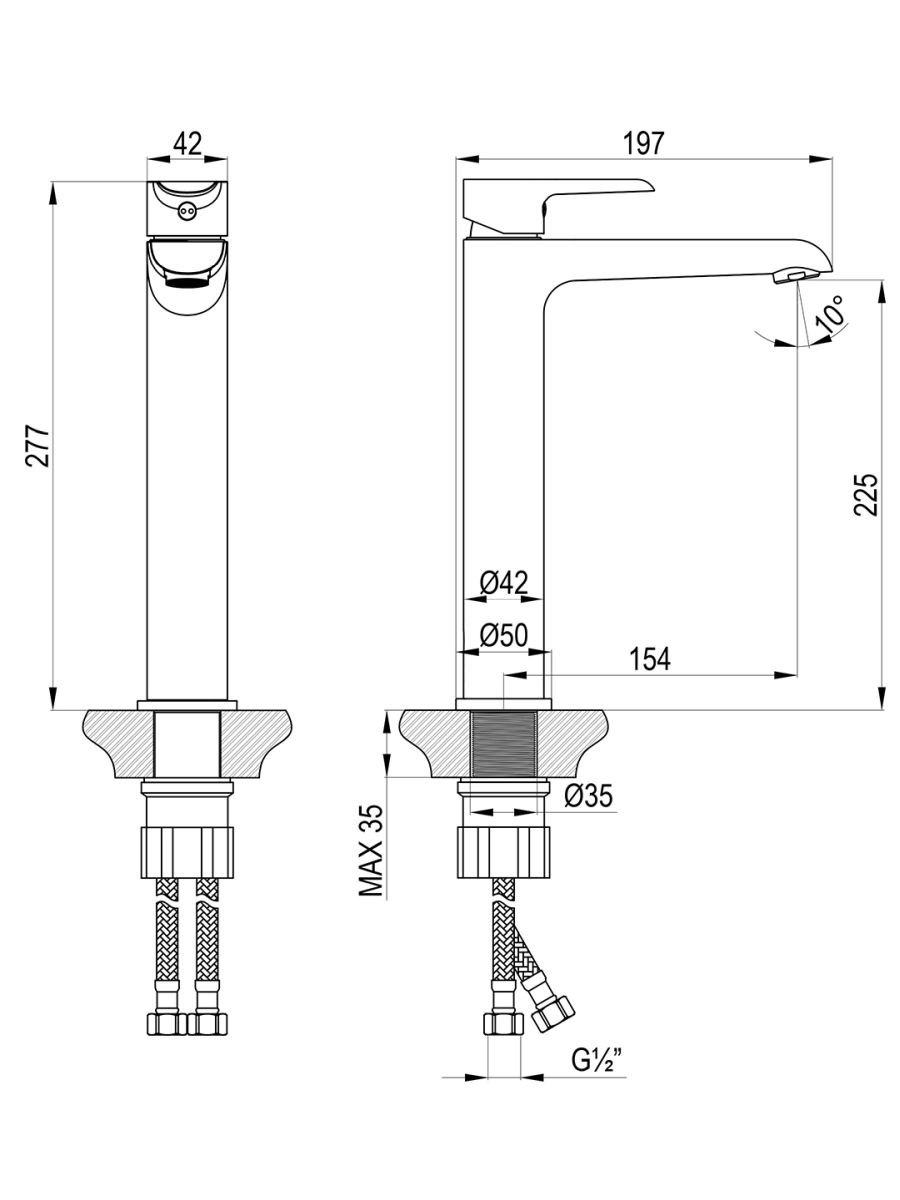 В комплекте:Аэратор с изменяемым углом подачи водыКерамический картридж 35 ммГибкая подводка ½” 35 смПрисоединительная группа для настольного крепления Металлическая рукоятка