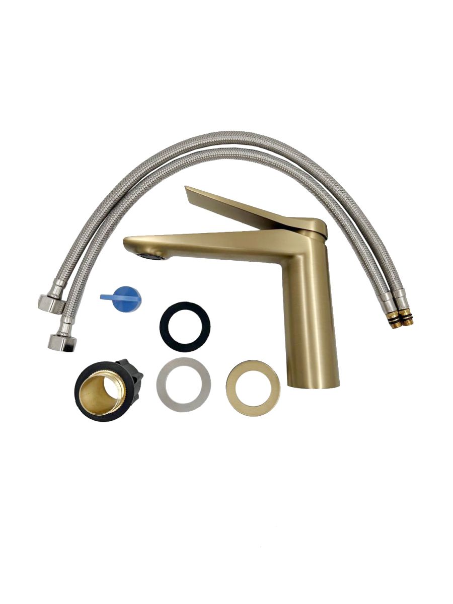 Корпус: латунь кат.A Цвет: Брашированное золото. Картридж: универсальный ESKO, 35мм Комплектация: пьедестал, крепление FixFit, гибкая подводка 50см, ключ для аэратора.