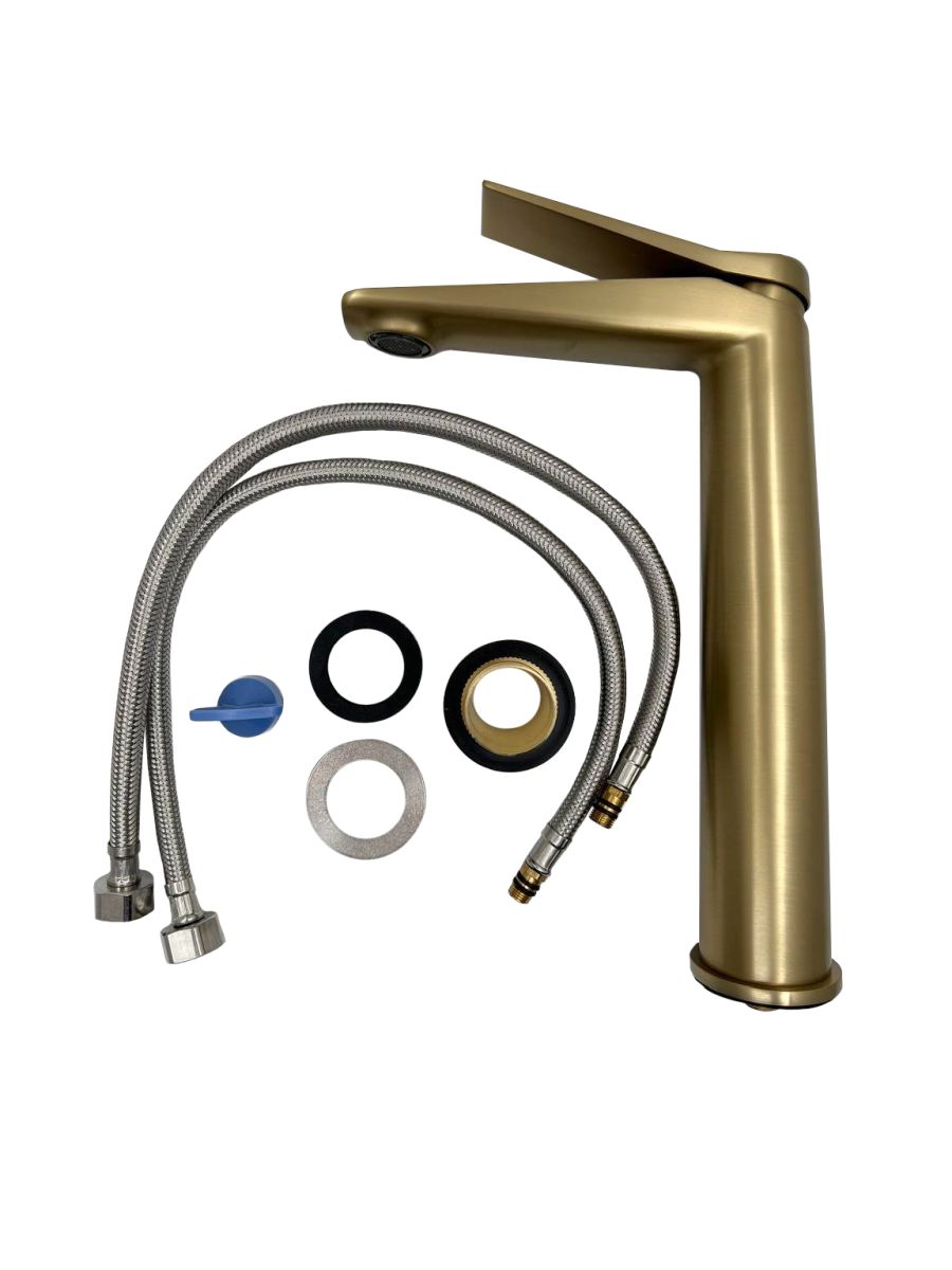 Корпус: латунь кат.A Цвет: Брашированное золото. Картридж: универсальный ESKO, 35мм Комплектация: пьедестал, крепление FixFit, гибкая подводка 50см, ключ для аэратора.