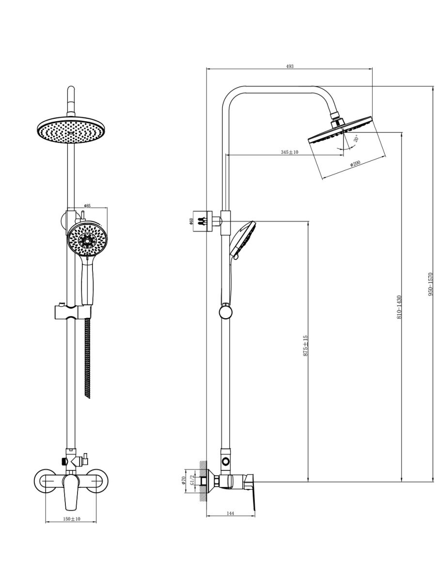 - Верхняя поворотная душевая лейка "Тропический дождь" 200 мм с функцией легкой очистки