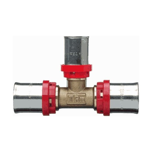 Пресс-тройник Terma представляет собой пресс-соединение для металлопластиковых труб диаметром 20 мм с ответвлением под 90 градусов для трубы диаметром 16 мм. Применяется при монтаже трубопроводов различного назначения. Пресс-гильзы изготовлены из стали AISI-304, корпус пресс-тройника из латуни.